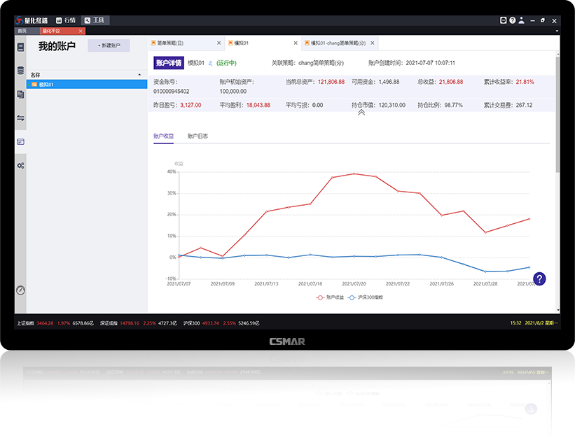 内置数种策略模板代码,从双均线、布林带等简单策略到涵盖股票、期货、期权等不同品种的复杂混合策略,帮助用户更快熟悉量化交易的策略思想和代码实现,为下一步的策略研究给予基础和参考。
